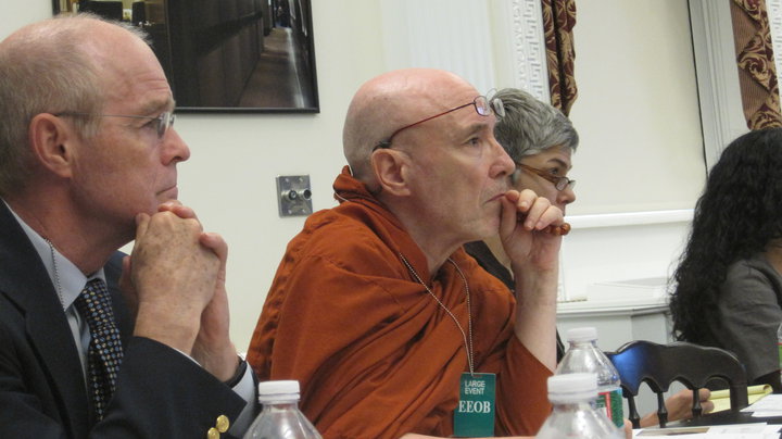 CIFA invited BGR chairperson Ven. Bhikkhu Bodhi and executive director Kim Behan to participate in the first meeting of the task force, held at the White House on the afternoon of July 26th. The meeting opened with words of welcome and encouragement from Rev. Josh Dubois, head of the Office of Faith-Based and Neighborhood Partnerships under President Obama. The conveners of the meeting then gave a broad presentation of CIFA’s plans to increase interfaith collaboration, illustrated by detailed charts and diagrams. This was followed by a lively exchange of views and comments from the members of the task force, with appreciated contributions from Ven. Bodhi and Kim Behan.